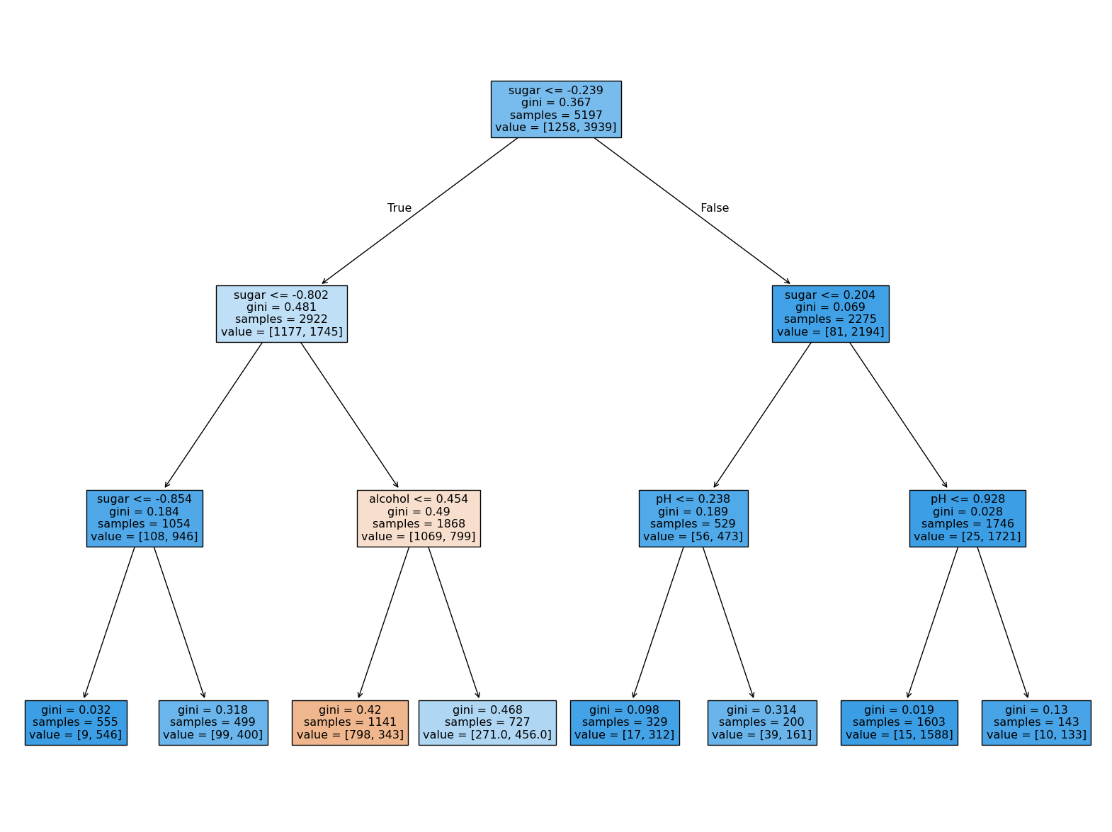 데이터 - alcohol, sugar, pH / 타깃 - class 이렇게 설정.