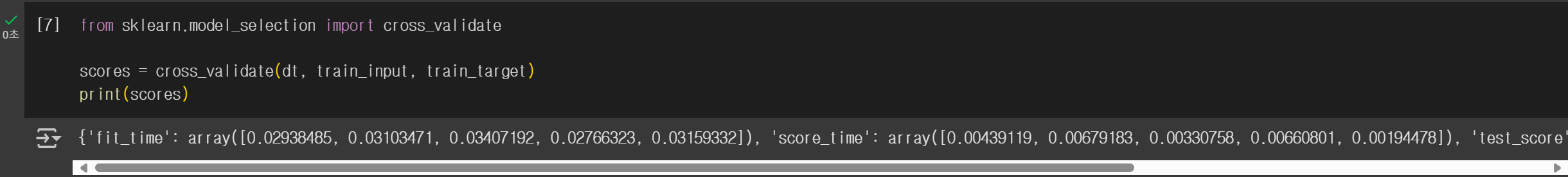 cross_validate()를 사용하면 거대한 출력값이 나온다........