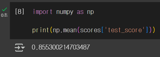 ✅cv_results_['mean_test_score'] : 교차 검증의 평균 점수